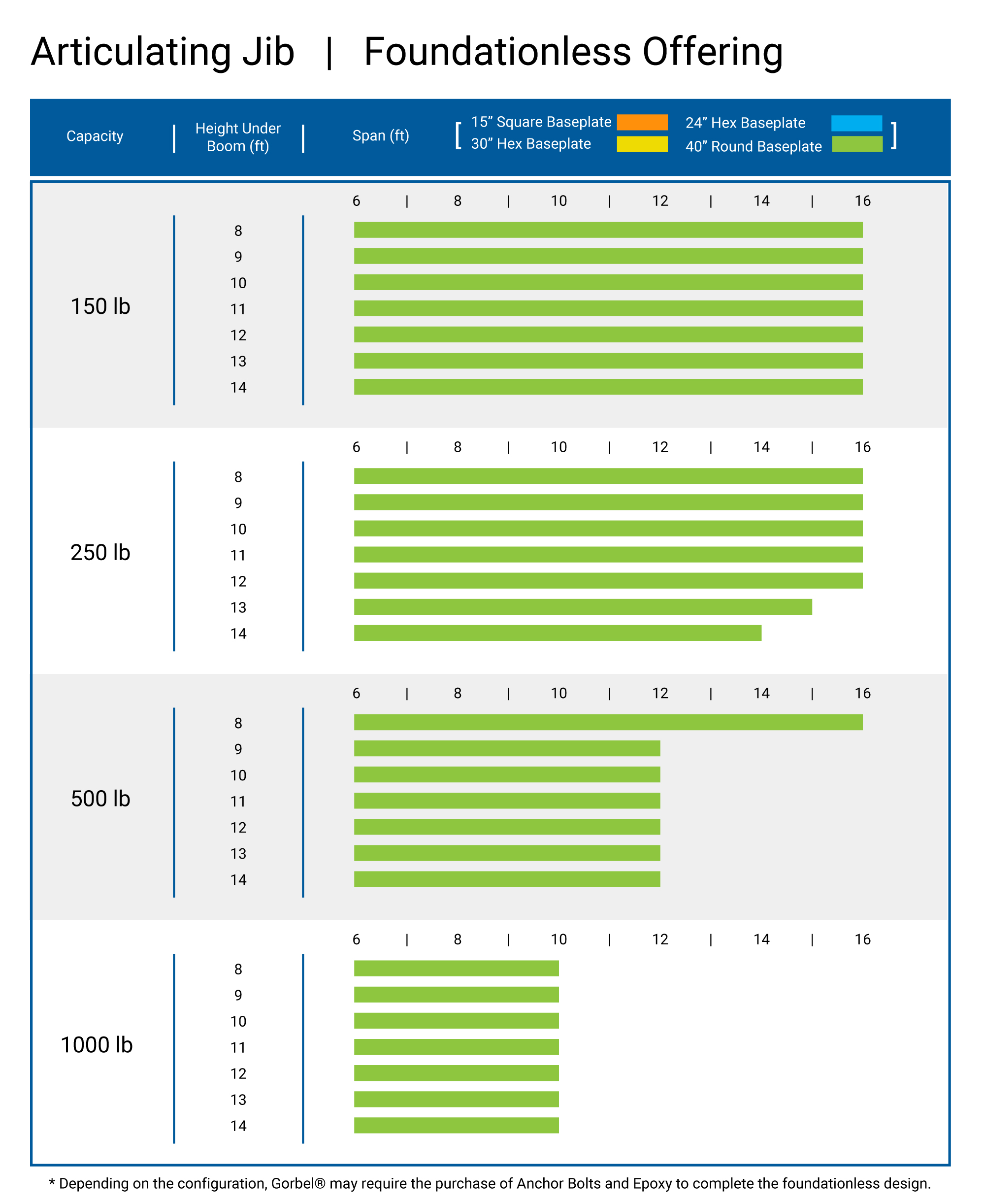 Las grúas sin cimientos le brindan mayor flexibilidad en la ubicación de la instalación inicial. También es fácil reubicar una grúa cuando no hay un cimiento vertido. Cuando su operación cambia, la grúa sin cimiento Gorbel acompaña ese cambio.